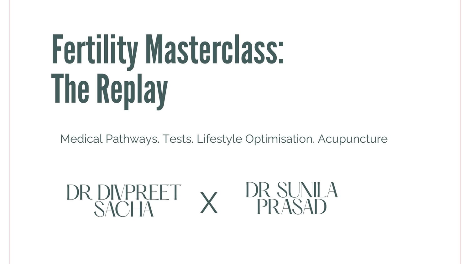 A GP who has been through IVF herself, and a paediatric doctor turned fertility acupuncture specialist — in one honest hour covering what the system rarely has time to explain. Whether you're trying naturally, waiting for a clinic appointment, or already in treatment — this is for you.